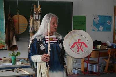 In einem 2 stündigen Vortrag über Indianer sollten die Schüler erfahren, dass Herr Moll einem echten Indianerstamm in Nordamerika angehört und diesen regelmäßig  in seinem Reservat besucht. Dabei lernte er die Kultur der Indianer zu schätzen und zu schützen, indem er sie lebt. Die Kinder und Lehrer der 4a werden dies wohl in Zukunft auch versuchen und ihr neues Wissen weitererzählen.