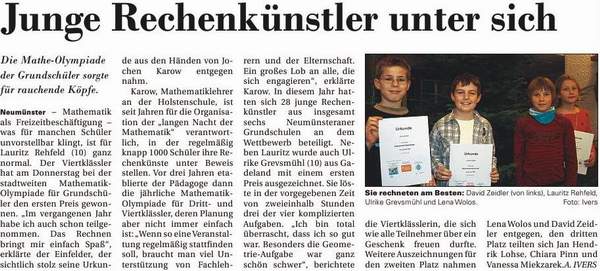 In der Gesamtwertung aller Grundschulen konnte Lena Wolos den 2. Platz und Eike Schönebaum den 4. Platz belegen.