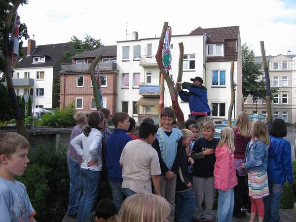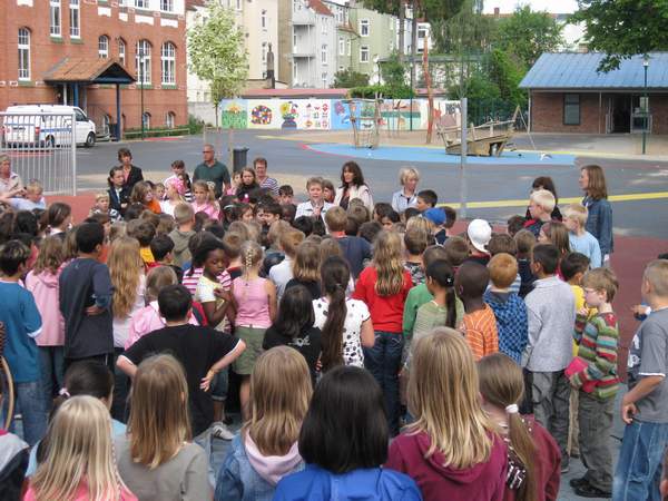 In einem kleinen Festakt auf dem Schulhof verabschiedeten sich die 4 Klassen mit wunderschön gestalteten Fahnen von ihrer Grundschule