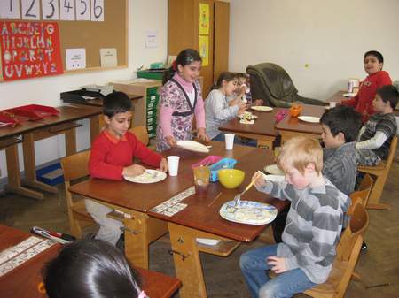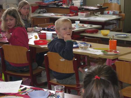 Alle Schüler und Lehrer waren mit viel Freude und Spaß dabei das Frühstück vorzubereiten. Vielleicht war das der Grund dafür, dass alles aufgegessen wurde und nichts übrig blieb.