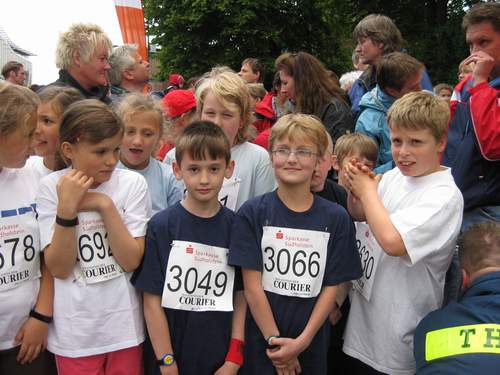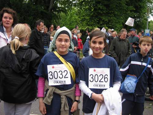 In blauen T-Shirts gings gemeinsam an den Start. Wir sind stolz auf alle Läufer und Läuferinnen. Ihr habt Euch für die Schule eingesetzt und seid super gelaufen.