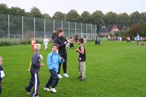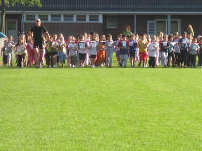 Nach der Begrüßung durch Frau Wulf-Fechner motivierte der Organisator Herr Schönen die Schüler durch ein paar launige Sprüche, bevor er den Startschuß zum diesjährigen Run and Fun Wettbewerb gab