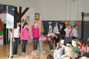 Begleitet wurde das Stück vom Chor unter der Leitung von Frau Bukatz und von der Tanz- AG unter der Leitung von Frau Hallupka.