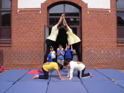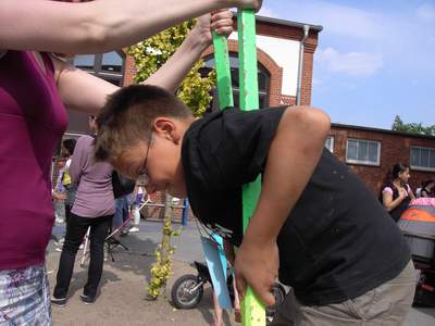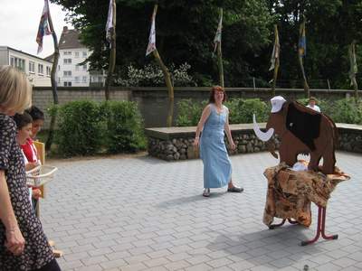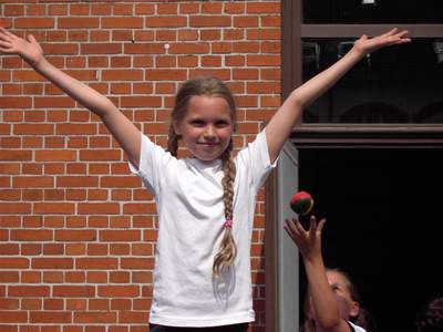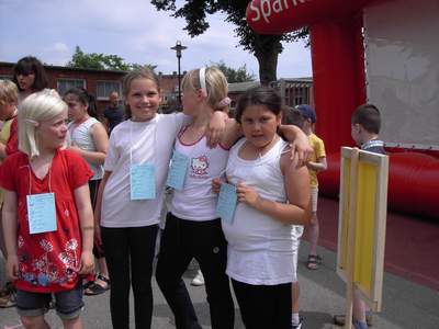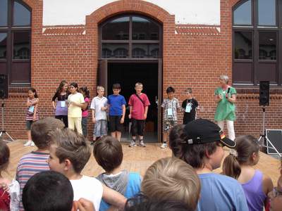Danach ging es endlich los. Die zahlreichen Spielstationen wurden eröffnet. Frau Bukatz führte gekonnt durch das Bühnenprogramm