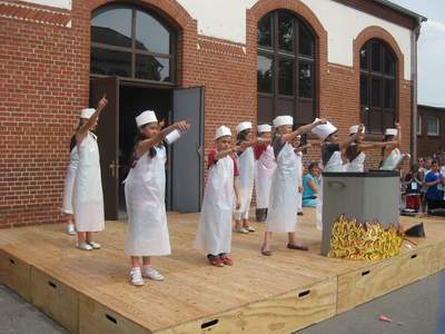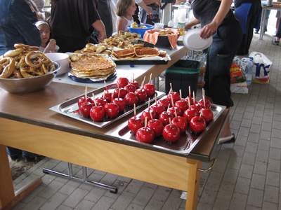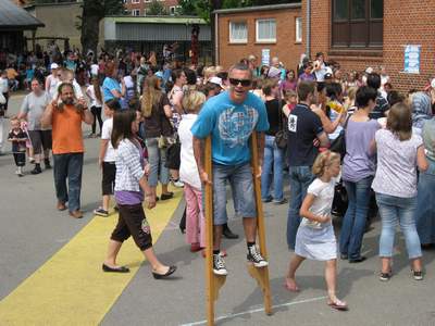 Bei bester Stimmung feierten über 600 Schüler, Eltern, Lehrer und Freunde der Schule ein gelungenes Schulfest. So viele Spiele, Vorführungen und Attraktionen gab es wohl noch nie. Überall gab es Schlangen und in den Pausen wurden leckere Köstlichkeiten, die die Eltern mitgebracht hatten gegessen. Besonders beliebt bei den Kindern waren die Liebesäpfel aus der Mensa, sodass richtige Jahrmarktsstimmung aufkam.