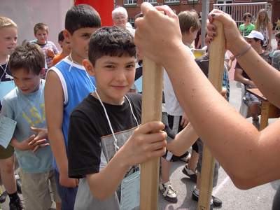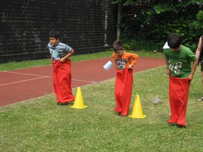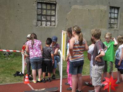 Bei den von den Lehrern liebevoll vorbereiteten Spielen kamen nicht nur die „Kleinen ins Schwitzen“.