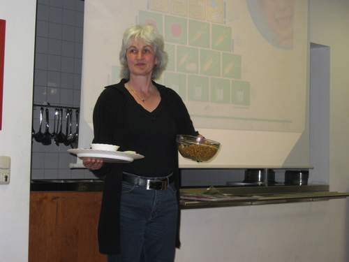 Frau Franke präsentierte in Zusammenarbeit mit den Eltern und der Küchenleitung kostengünstige Rezepte und vermittelte ganz nebenbei in einem kurzweiligen sehr anschaulichen Vortrag über gesunde Ernährung einfache Verhaltensregeln für eine gesunde Ernährung..
