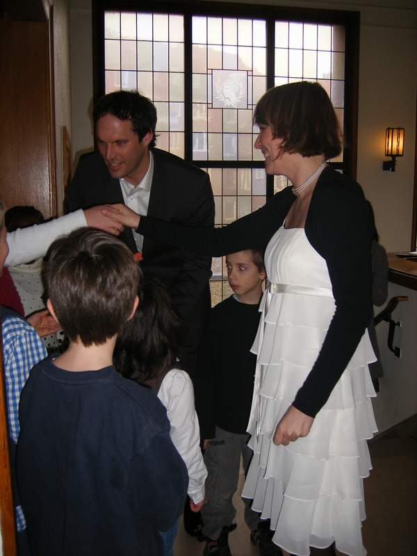 Diese und die Hochzeitsgesellschaft staunten nicht schlecht als sie aus dem Trauzimmer des schönen Kieler Rathauses herauskamen und von Fehrsschulkindern und Frau Bukatz mit einem rührenden Ständchen empfangen wurden.