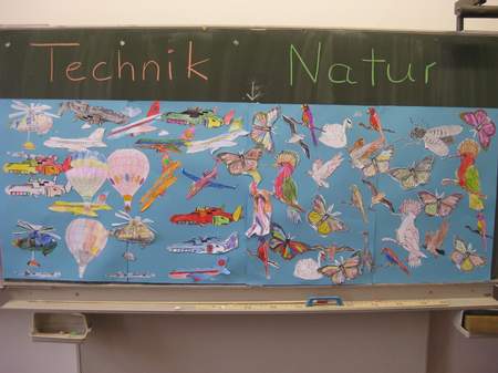 Zu den beiden Themen Natur und Technik durften sich die Schüler verschiedene Bilder aussuchen und diese anschließend ausmalen, ausschneiden und aufkleben.