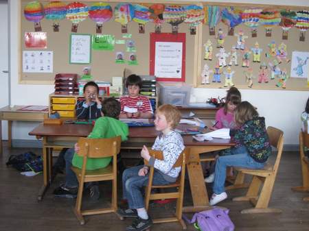 Im Medienraum der Schule sahen sich die Kinder einen Film über Störche und deren Flug- und Zugverhalten an.i