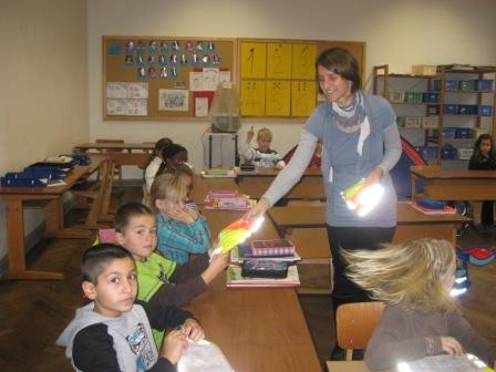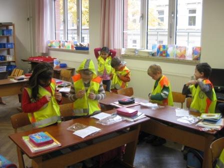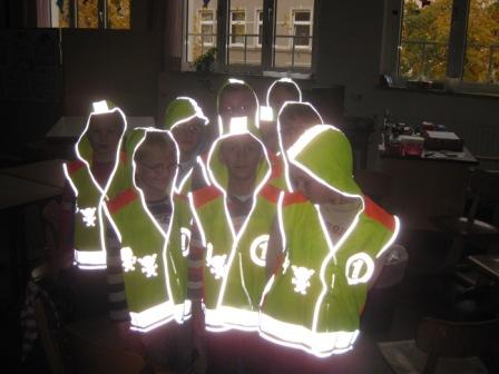 Endlich sind die Sicherheitswesten da.Frau Zwickel verteilte die Westen inallen ersten Klassen, die in einer Aktiondes ADAC an die Grundschulenverschickt wurden.