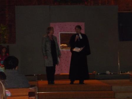Die Pastorin sprach ein paar einleitende Worte zum Musical „Die weltweite Suche nach dem Weihnachtsmann“