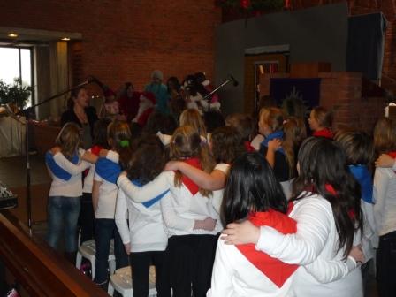 Zum Abschluss dieser tollen Feier sangen allezusammen die Lieder „Kinder tragen Licht insDunkel“ und „Dicke rote Kerzen“ und jedes Kinderhielt noch eine schöne Weihnachtskarte.In diesem Sinne: „Frohe Weihnachten“!