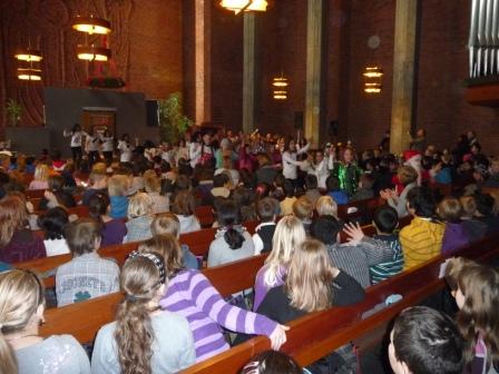 Alle Klassen gingen zur Bugenhagenkirche, um dort gemeinsam zu singen und zu feiern.