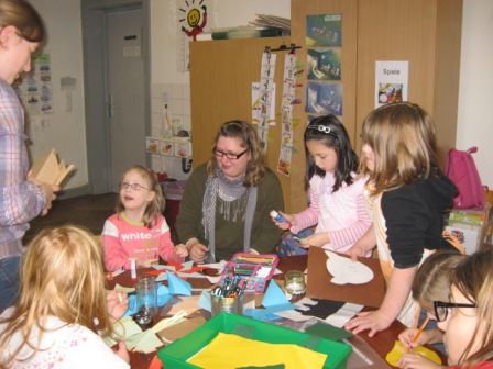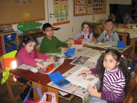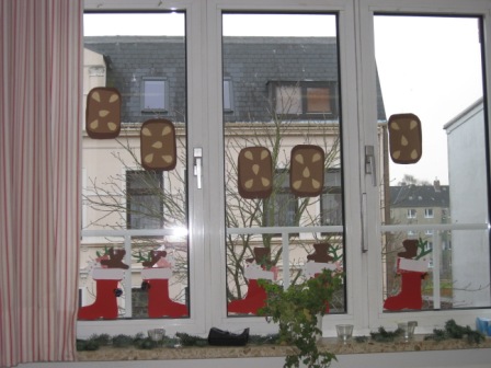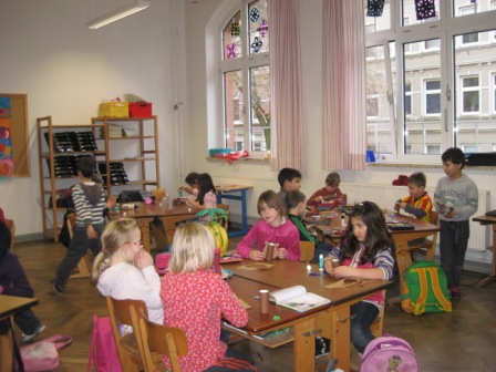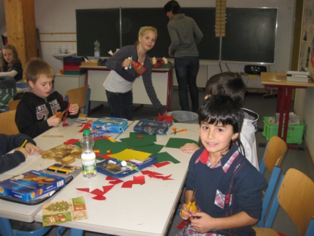 Die tollen Basteleien und Bilder wurden in denKlassenräumen und Fluren aufgehängt und …