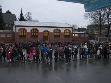 Die Fehrs Schule organisierte einen „flashmob“ auf dem Schulhof. Alle Schülerinnen und Schülerversammelten sich in kürzester Zeit um gemeinsam das Lied „If you´re happy and you know it“ zu singen und zu tanzen. Hier kannst du das Lied hören. Einfach anklicken