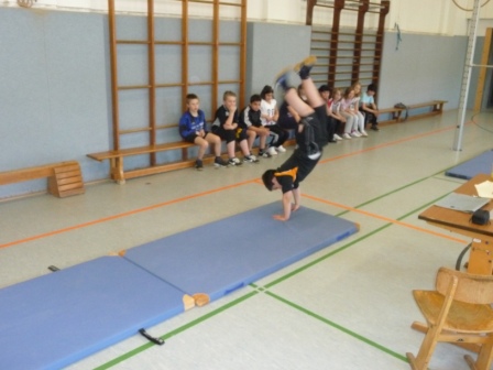 ​Am Boden, beim Sprung und am Reckzeigten die Schülerinnen und Schüler Vorwärts- und Rückwärtsrollen… …