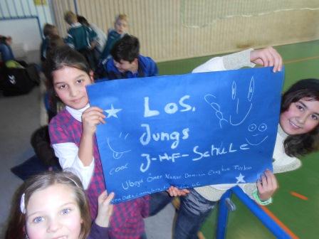 Die Klasse 4c unterstütze die „Fehrs Kicker“ lautstark von den Zuschauerrängen. Mit selbst gemalten Plakaten wurden die Spieler noch zusätzlich motivier