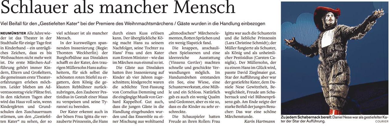 Am 10.12. besuchten alle Klassen der Fehrs Schule das Theaterstück „Der Gestiefelte Kater“. Die Kinderwaren begeistert und ließen die Schauspieler erst nach der dritten Zugabe von der Bühne.
