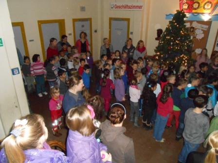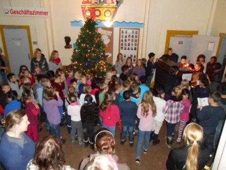 Wie jedes Jahr in der Adventszeit, singen die Schüler und Lehrer gemeinsam Weihnachtslieder.