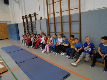 Nach dem gemeinschaftlichen Aufwärmen durften die Kinder mit dem Bodenturnen beginnen.