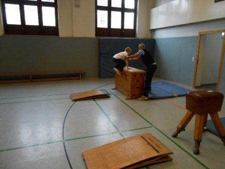 Die letzte Station war der Sprung. Aufhocken, Hockwende, Grätsche und Hocke hießen die Übungen an diesem Gerät.