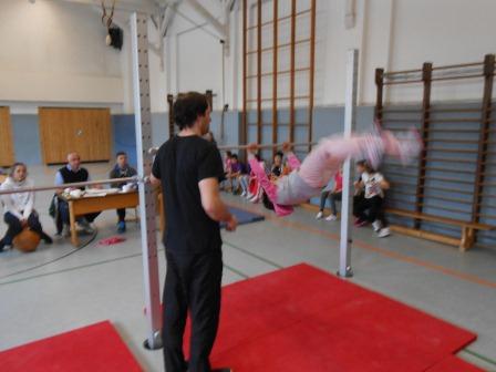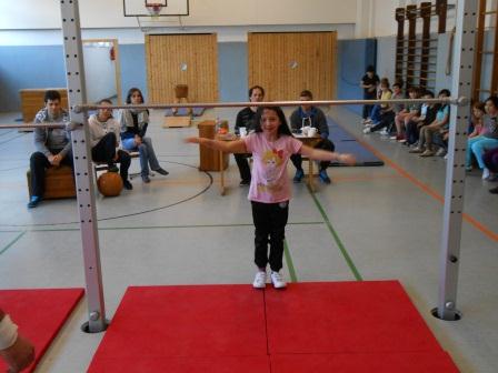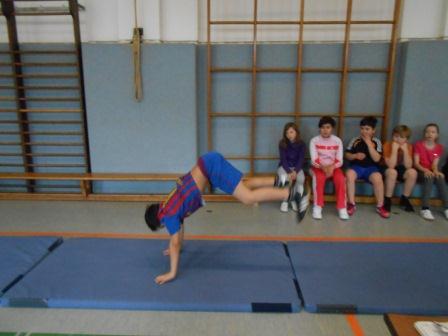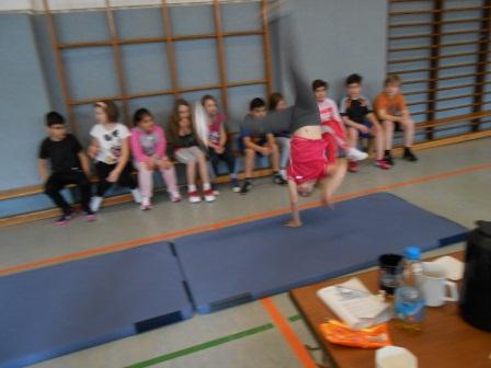 Rolle vorwärts/ rückwärts, Radschläge, Radwenden und Handstände hießen die Übungen.