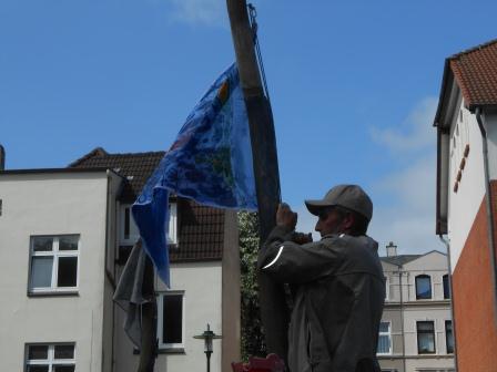 Herr Knut war verantwortlich für das Hissen der Flaggen, die nun an die 4. Klassen erinnern