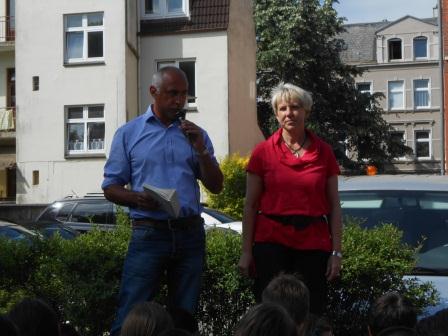 Herr Schoenen und Frau Wulf- Fechner beider Vergabe der Ehrenurkunden fürdie besten Schüler der Bundesjugenspiele