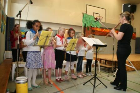 Rund 60 Schülerinnen und Schüler der Johann-Hinrich-Fehrs-Schule begeisterten am vergangenen Donnerstag mit einem abwechslungsreichen Programm. Anlässlich des alljährlichen Musikabends nutzten die musisch-künstlerischen AGs der Schule die Gelegenheit, Eltern und Lehrern, Geschwistern und Mitschülern ihr Können zu präsentieren. So brachte das „Flöten-Orff-Orchester“ zunächst drei Musikstücke zu Gehör, bevor die Theater-AG samt Chor und Tanzgruppe die Zuschauer in die afrikanische Savanne entführte.