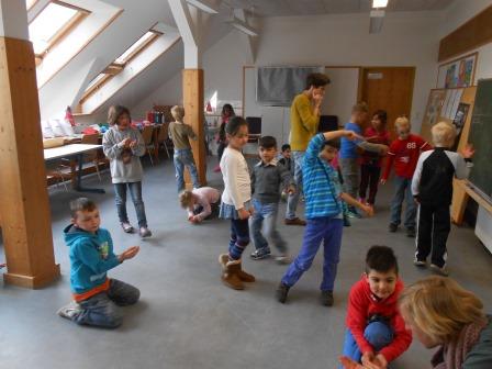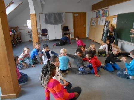 Nach einer kurzen Aufwärmrunde sollten die Kinderihre Fantasie spielen lassen. Und so wurdeein normaler Klassenraum zum Wald, der mit allenSinnen erforscht wurde. Anschließend verwandeltensich die Kinder in Hunde, Katzen, Mäuse undAmeisen. Die Ameise VIVO ist schließlich dasMaskottchen des Projektes, denn Ameisen leben inGemeinschaft, arbeiten gut zusammen, sind fleißigund stark- genau wie die Kinder der Fehrs-Schule