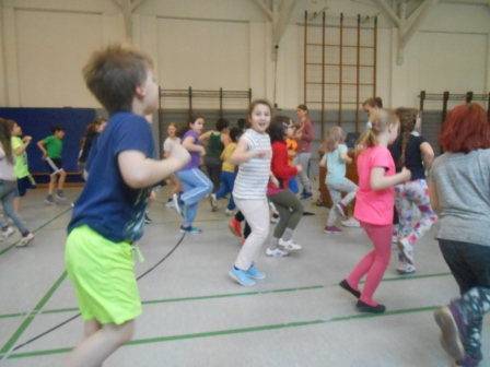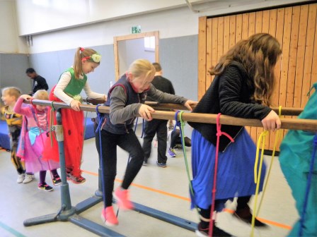 In der Sporthalle konnten sich die Schülerin der Bewegungslandschaft richtig aus toben. Der tolle Abschluss war die Polonaise durch die ganze Schule.