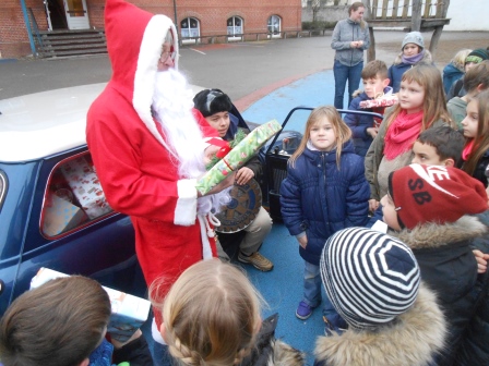 Der Weihnachtsmannbesuchte die Fehrs- Schule und hatte ein ganzes Auto voller Geschenke mit !