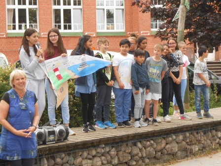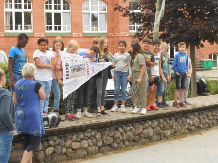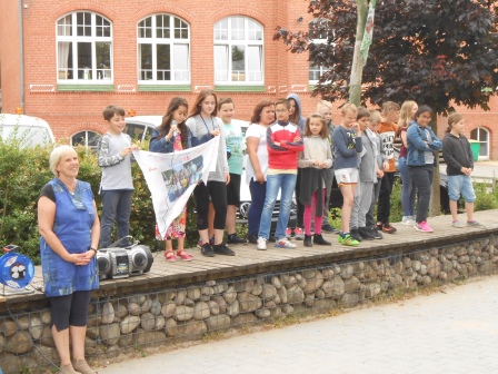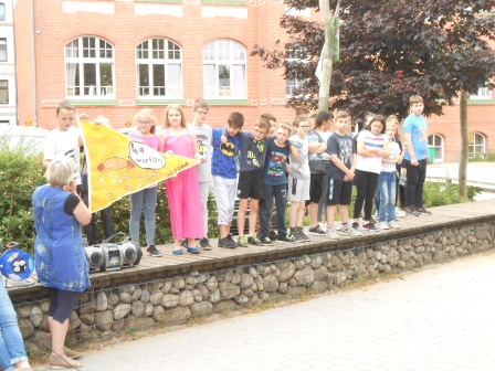 Die Klasse 4c mit ihrer Flagge