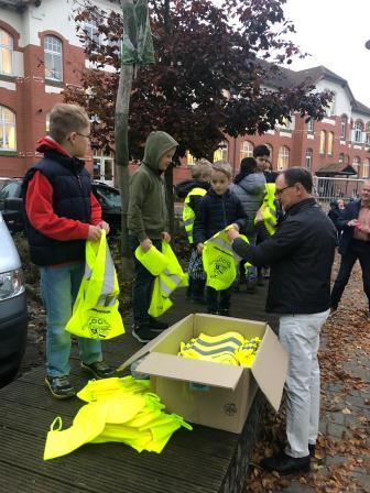 Der Rotary Club Neumünster spendiertetolle Sicherheitswesten für die Kinderder 1. Klassen