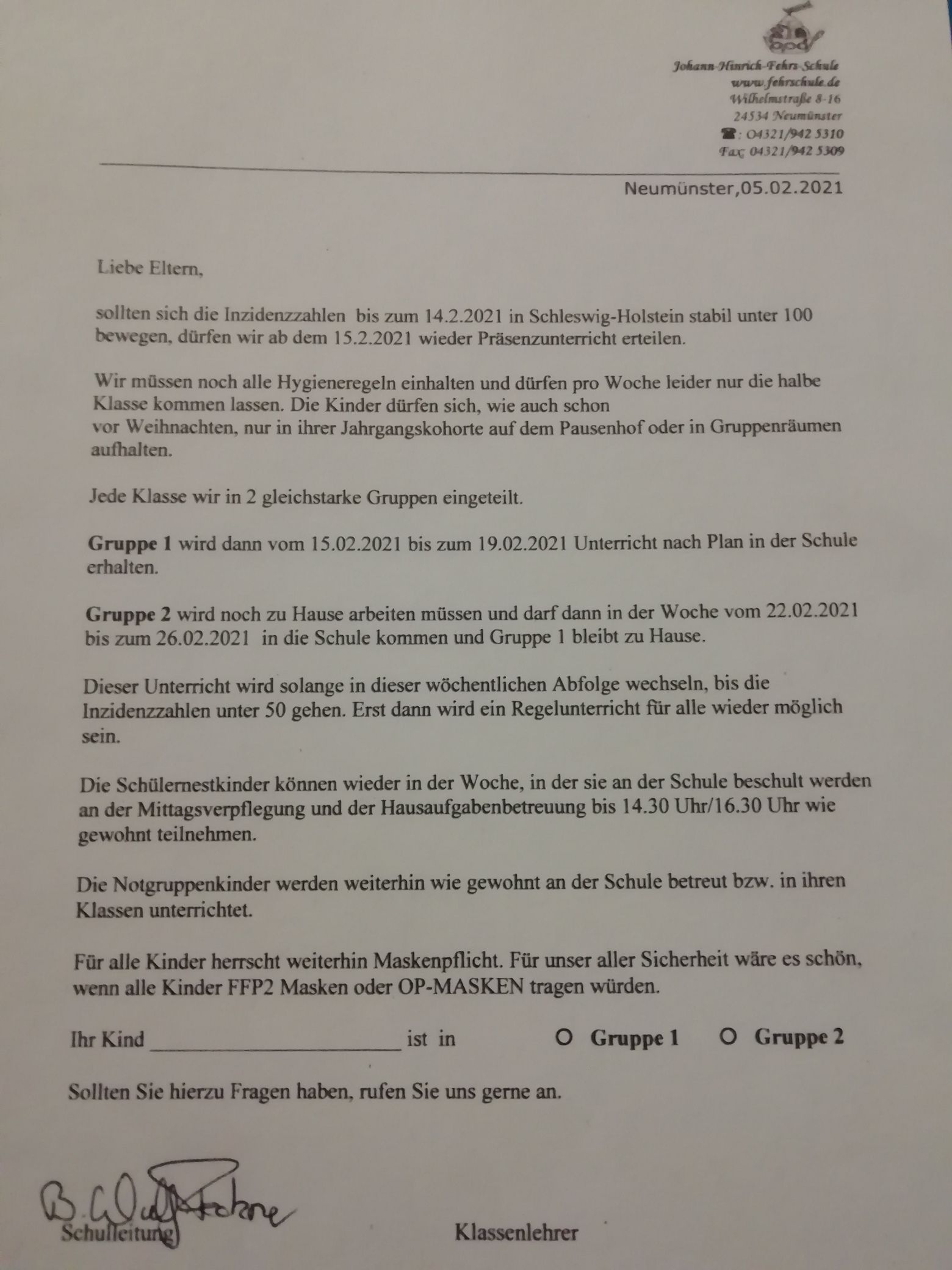 Elternbrief Unterricht ab 15.2.21