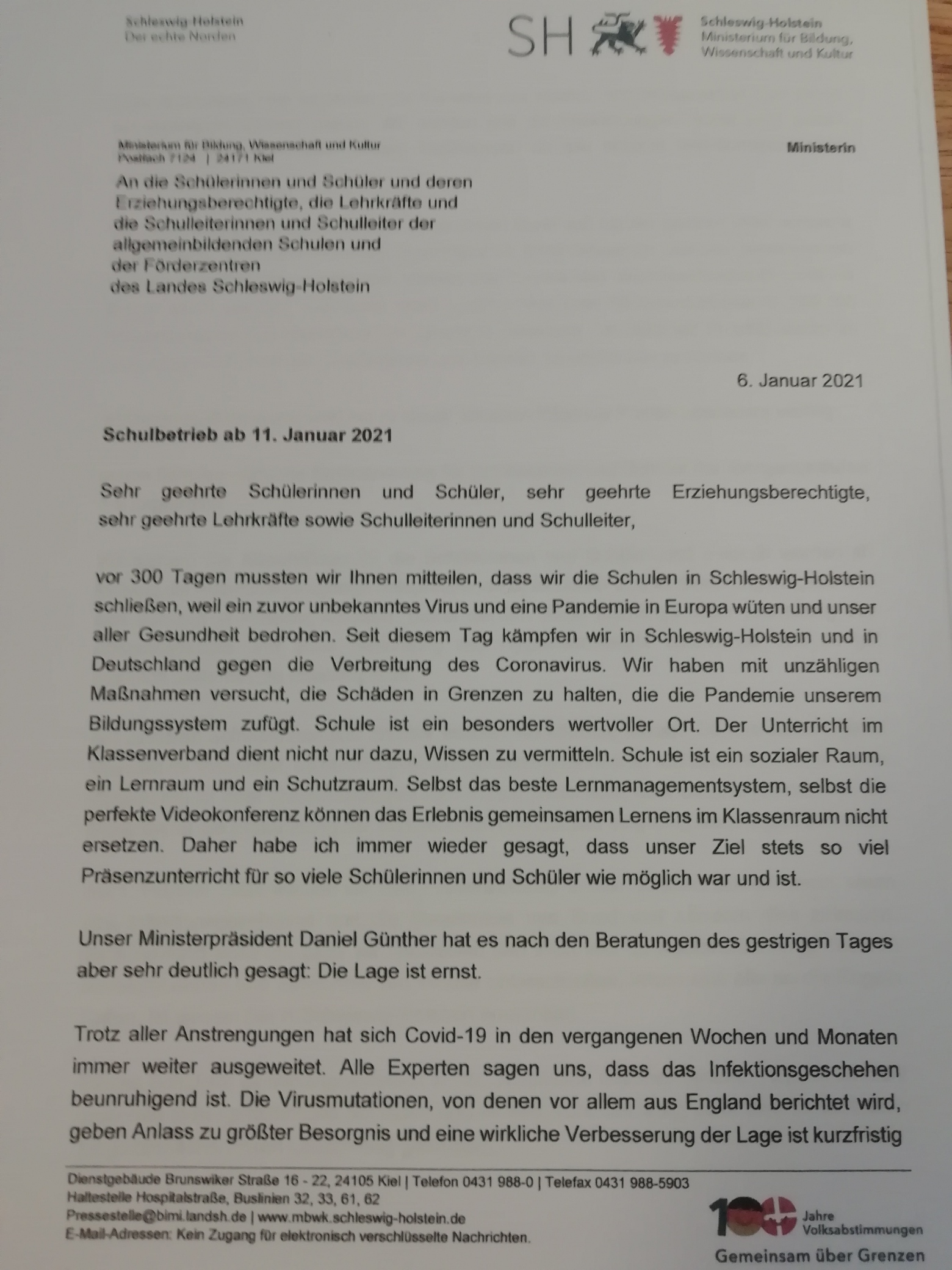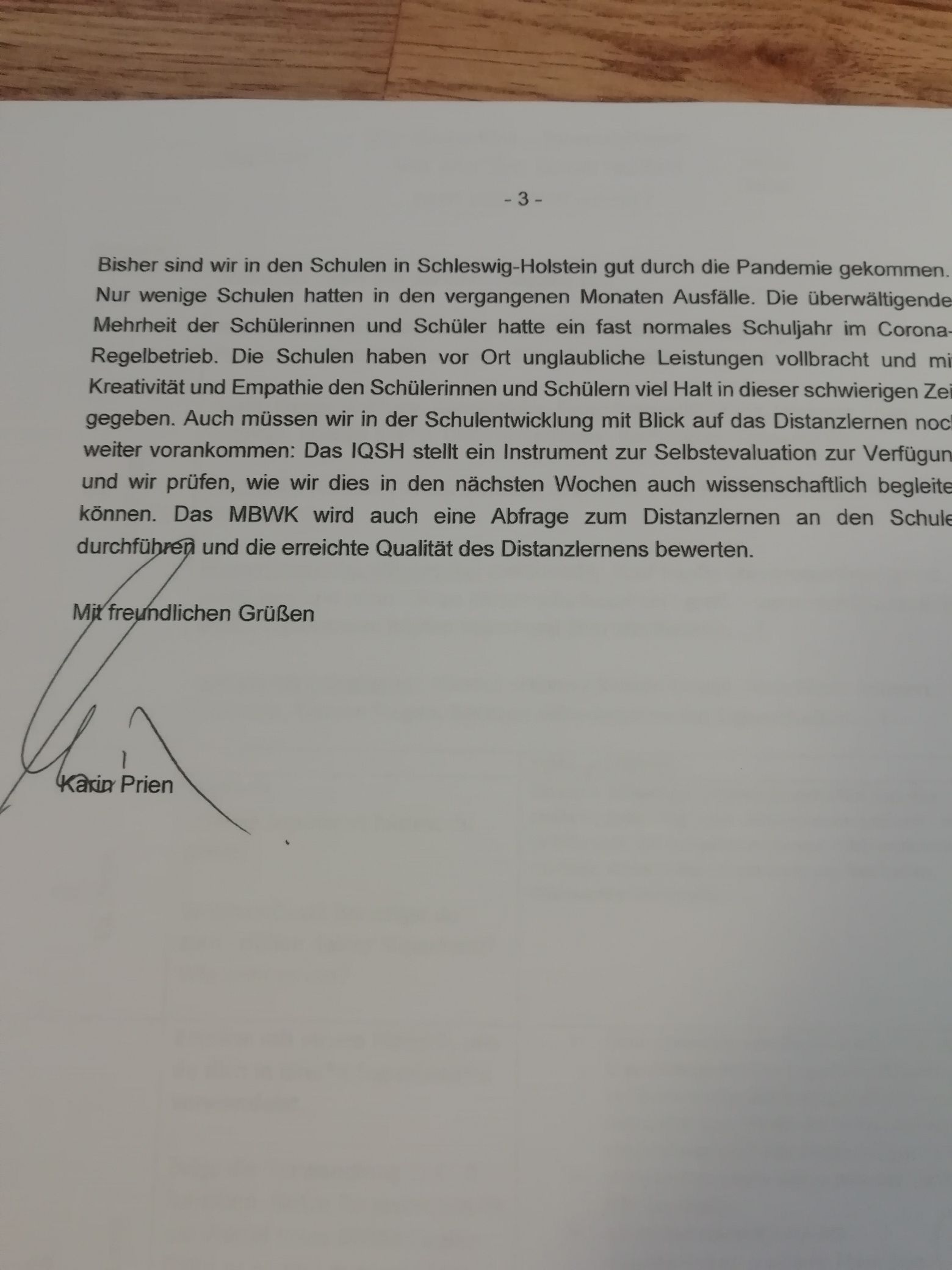 Schulanschreiben Frau Prien