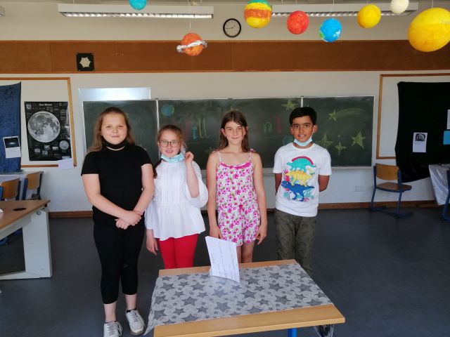 Am Mittwoch, den 16.6.2021, präsentierten die Kinder der Forscher – AG ihren Mitschülern eine Ausstellung zum Thema „Weltall“. Die Forscher-Kinder haben viele Wochen fleißig recherchiert und gearbeitet. Die Arbeit hat sich gelohnt. Es war eine tolle Ausstellung!
