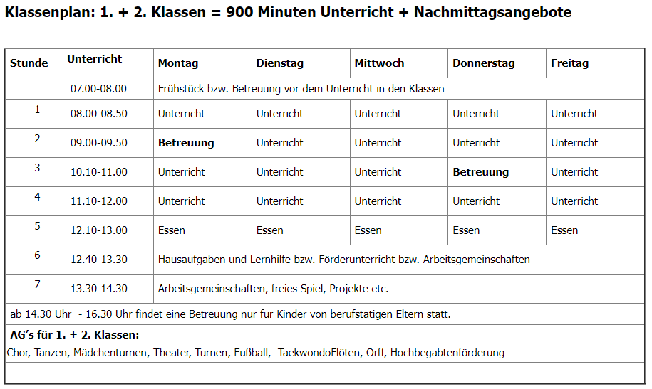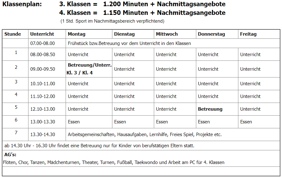 Unterrichtszeiten